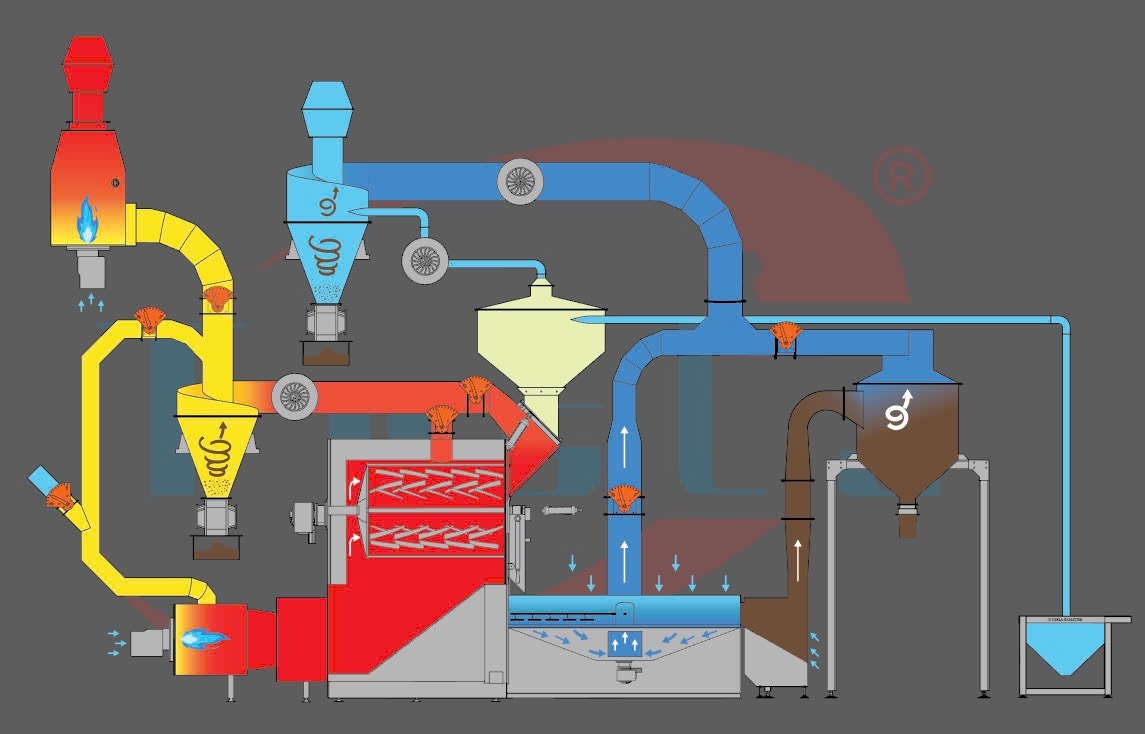 Hệ thống rang cà phê công nghiệp tuần hoàn toàn diện - Máy rang cà phê OTL 120kg