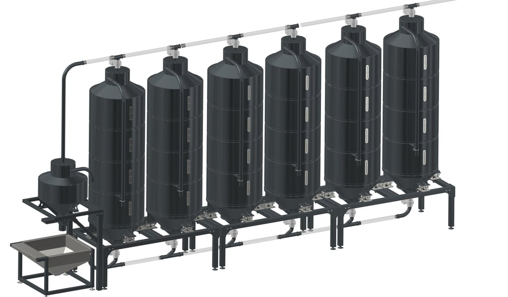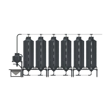 Kết nối linh hoạt: Hệ thống đường ống kết nối các silo, cho phép vận chuyển hạt cà phê một cách trơn tru giữa các giai đoạn sản xuất.